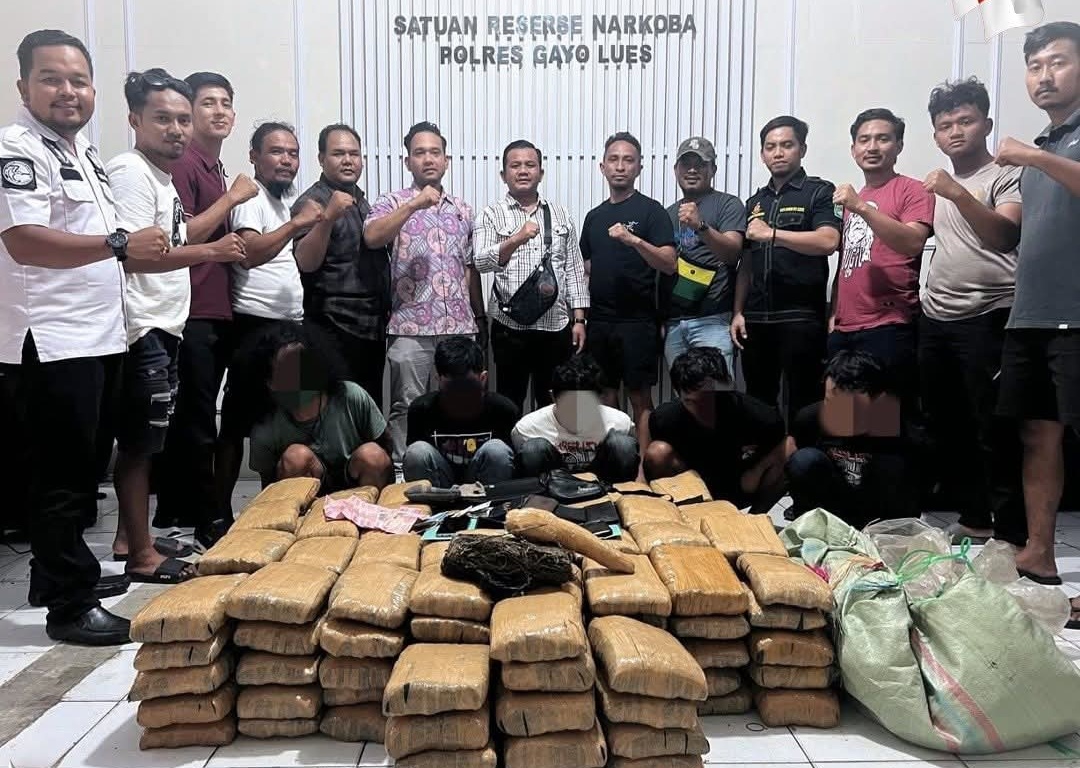 Gayo Lues, Acntimes.id – Satuan Reserse Narkoba Polres Gayo Lues kembali menorehkan prestasi dalam pemberantasan narkotika. Dalam operasi yang berlangsung pada Rabu, 13 Agustus 2025 siang, polisi berhasil menggagalkan peredaran ganja dalam jumlah besar dan menangkap lima tersangka.