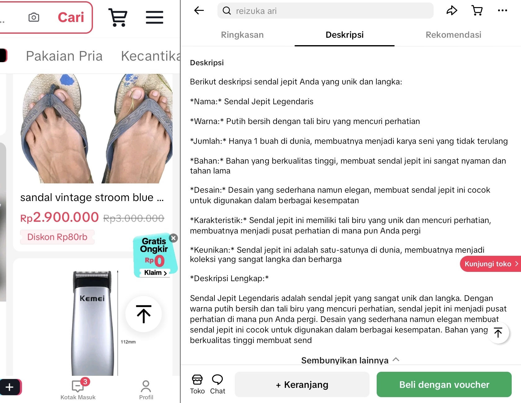Aceh Tamiang, Acntimes.id | Jagat maya dihebohkan dengan unggahan penjualan sendal jepit di salah satu platform e-commerce yang dibanderol dengan harga fantastis, yakni Rp 2.900.000. Bukan tanpa alasan, penjual menamai produk ini sebagai “Sendal Jepit Legendaris” yang diklaim hanya ada satu di dunia.